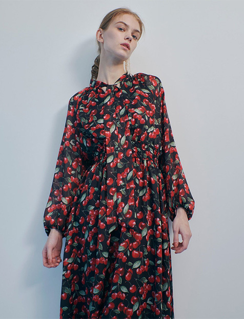 WEB限定 LISAチェリープリント ボウタイブラウス