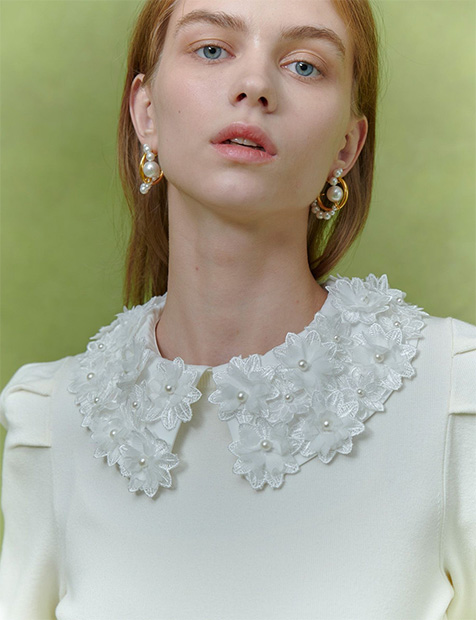 フラワー衿付プルオーバー